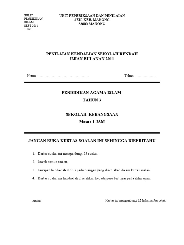 Muka Depan Kertas Peperiksaan Pdf